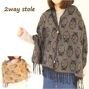 【即出荷】 ストール 大判 厚め ショール ポンチョ マフラー マント 柄 レディース おしゃれ 防寒 防寒対策 暖かい マフラー 秋 冬 ファッション【2wayストール シュエット&フラン】【送料無料】【あす楽対応】
