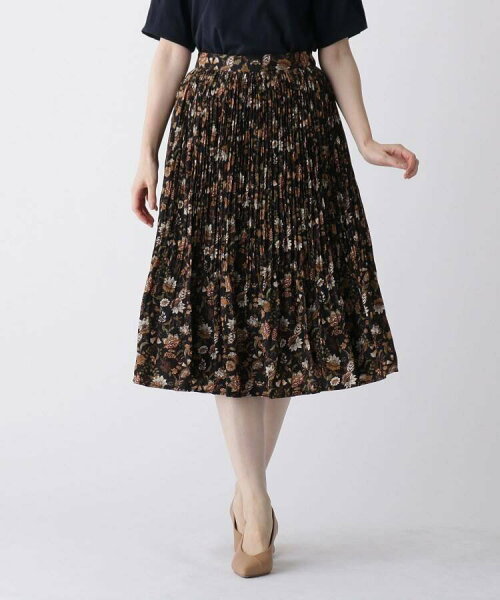 index(インデックス)ボタニカルフラワープリーツスカート【WEB限定サイズ】【マシンウォッシャブル】オリエンタルなボタニカル柄がシックな印象のプリーツスカート【素材】適度な肉感のあるポリエステルデシン素材を使用。
