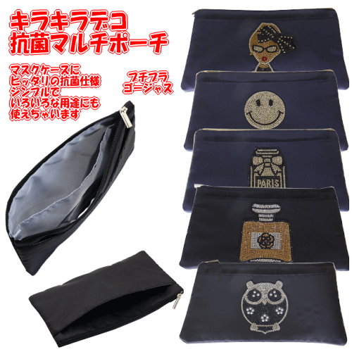 キラキラデコがとっても可愛くてゴージャス抗菌タイプのマルチポーチ使い方は多機能で用途もいろいろ衛生用品・スマホ入れ・ペンケースなどなどそして必須アイテムマスクケースとしても最適抗菌マスクポーチ キラキラデコ プチプラ