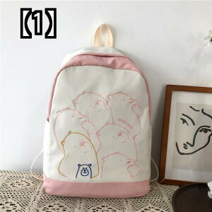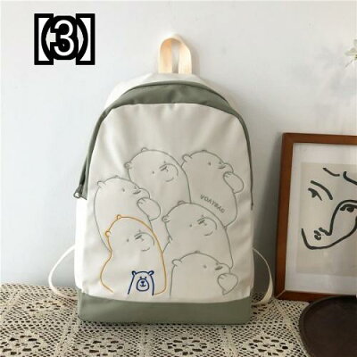 リュック 通学 女子 韓国 大容量 シンプル クマ キャンバス ナイロン 柔らかい a4 パソコン 防水 おしゃれ かわいい ポケット 旅行 学生 ピンク 黄色 緑