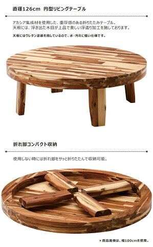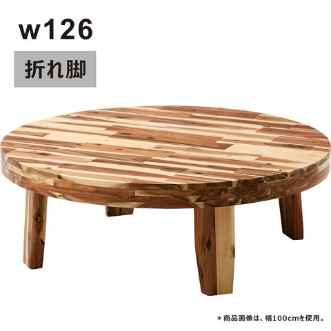 丸テーブル 折りたたみ 126センチ 座卓テーブル ちゃぶ台 折れ脚テーブル ローテーブル リビングテーブル 大きめ アカシア材 浮造り 円形テーブル 座卓 円型リビングテーブル 円卓 丸形 丸型 ラウンドテーブル ナチュラル おしゃれ ヴィンテージ ビンテージ