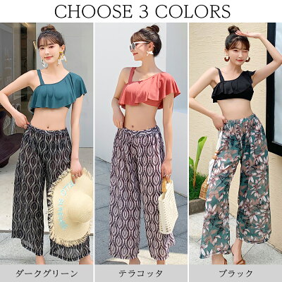 商品番号:CC10-3002 商品説明:透け感爽やかなロングパンツが印象的な アシンメトリーデザイン3点セット水着 前後ぐるりと囲むフリルがトレンド感 ストレッチ性の高いワッフル生地は優しい肌触り ボトムスはナチュラル柄がカワイイロング丈 リゾート感高く体形カバーが嬉しい ショーツはシンプルなデザインで 足長美脚効果でスタイルアップ! 全3色からお選びください 注意事項: 生地の取り方、柄の位置等によって写真と多少異なる場合がございます。