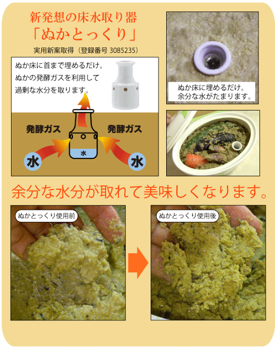 この「ぬかとっくり」は、面倒な水抜きも自動的にやってくれるスグレモノ。