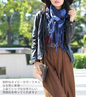 スタンダードな大判サイズで巻きでも羽織でもどちらでも使いやすくなっています。