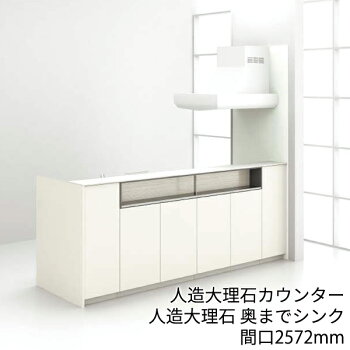 トクラス システムキッチン ベリー[Berry]:ステップ対面スリムハイバックカウンター 2572mm 基本プラン 奥行き888mm