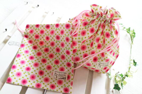 お弁当袋 コップ袋 セット 幼稚園 保育園 可愛い 男の子 女の子 ランチ お弁当 コップ マチ 給食 シルエットが可愛いデザイン!♪かわいいお弁当袋とコップ袋のセットランチ【2点セット】お弁当セットしっかり裏地付き北欧風フラワー