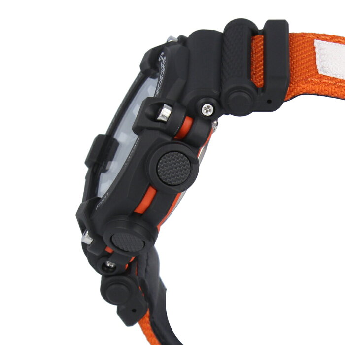 特徴 ムーブメント クオーツアナデジ 防水 20気圧防水 サイズ 本体サイズ 縦×横×厚:約52.8×49.5×16.9mm 重さ 約63g 素材 ケース素材 樹脂 ケースカラー ブラック 文字盤カラー ブラック バンド素材 クロスバンド バンドカラー オレンジ 付属品 「英語もしくは日本語マニュアル」 ダウンロード用QRコードの場合は外箱にシールにて張り付けていることもございます。