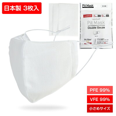 不織布フィルター使用 高機能マスク N95対応 PFE99% VFE99% フィルター付き マスク ピットマスクダブルガーゼ(3枚セット) 日本製 国産マスク フィルター マスク フィルターポケット付き マスク フィルター 付き マスク 不織布マスク